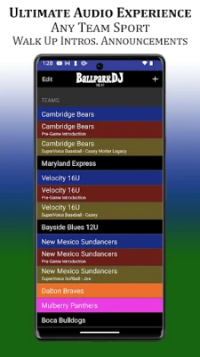 Looking to take your game introductions and announcements to the next level? Look no further than the BallparkDJ mobile app. This complete solution for professional voice and music intro creator app is a great tool for all varieties of youth sports. Infuse these professional intros from major league announcers with music and multiply them with SuperVoice to introduce every possible situation imaginable.