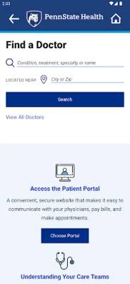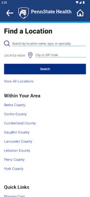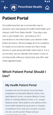 The Penn State Health mobile app gives you easy access to essential health care services and information wherever you are. Use the app to: