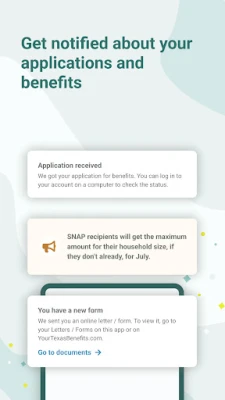 The Your Texas Benefits app is for Texans who have applied for or get: